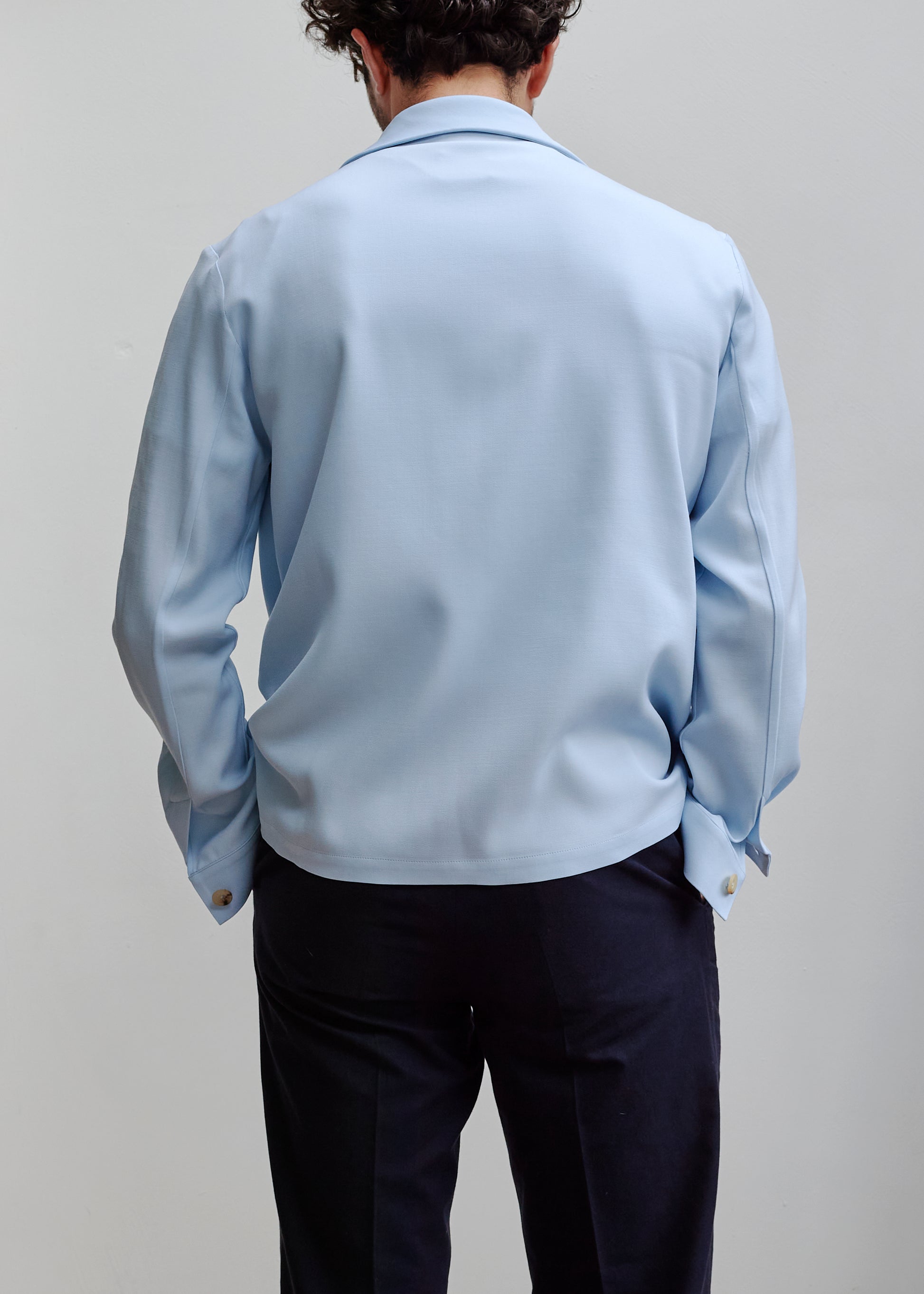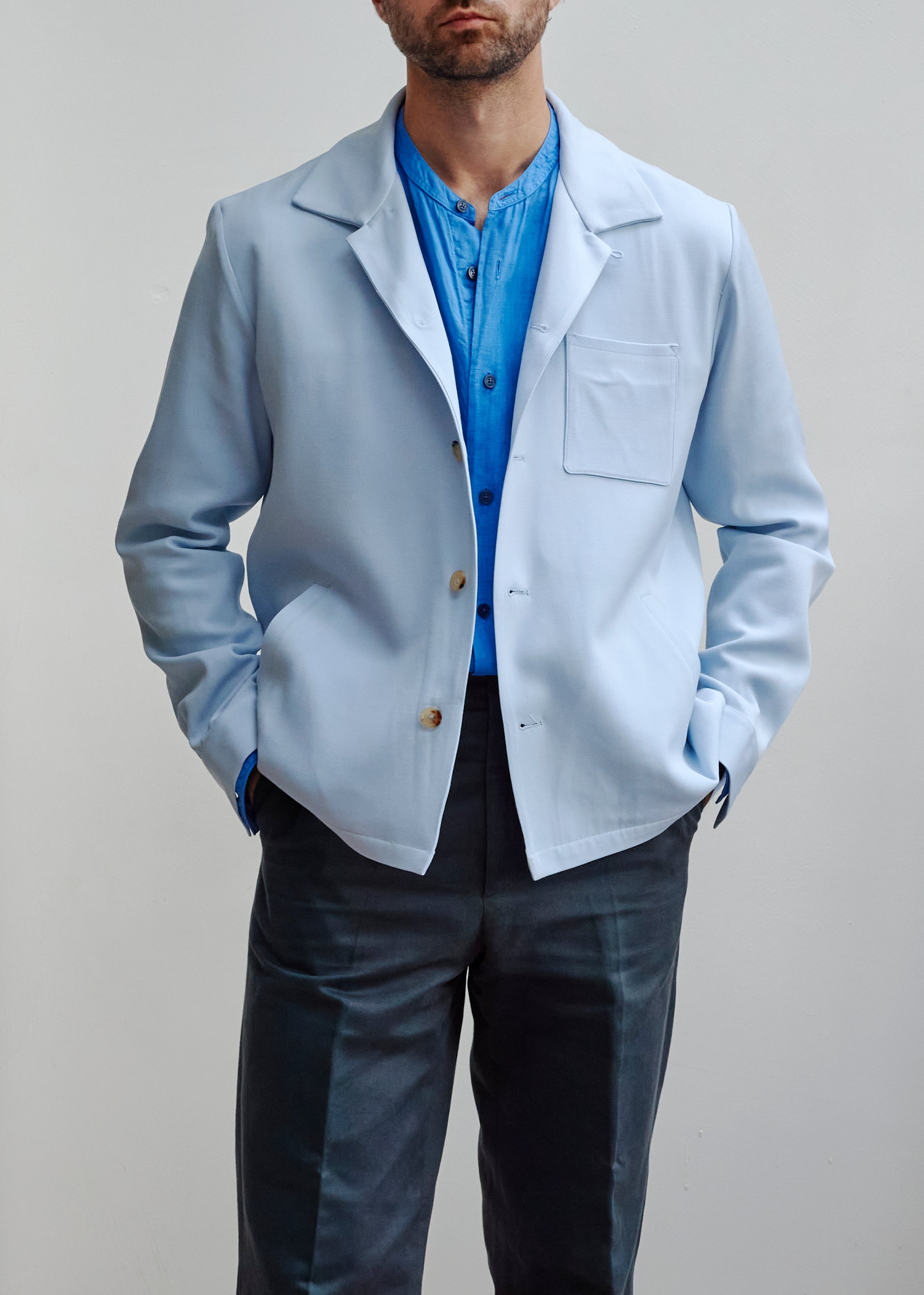 This summery sky blue suiting wool strikes you first with its bright and beautiful shade of blue. Its soft and flowing drape follows closely behind. This jacket is perfect for smarter occasions in the heat with its great breathability and sleek, Riviera appearance.